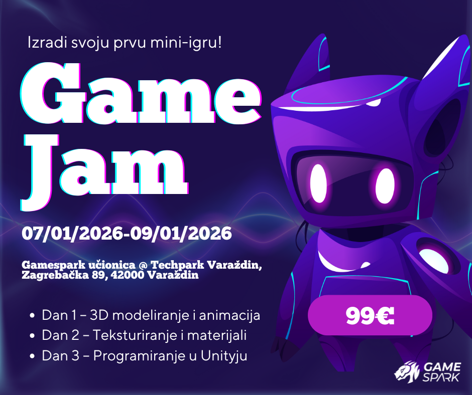 U siječnju 2026. organiziramo trodnevnu edukaciju XMAS Game Jam, posvećenu praktičnom učenju razvoja mini videoigara. Radionica je namijenjena početnicima, kreativcima, mladima, studentima, entuzijastima i svima koji žele zakoračiti u svijet game developmenta – bez prethodnog programerskog ili dizajnerskog znanja.